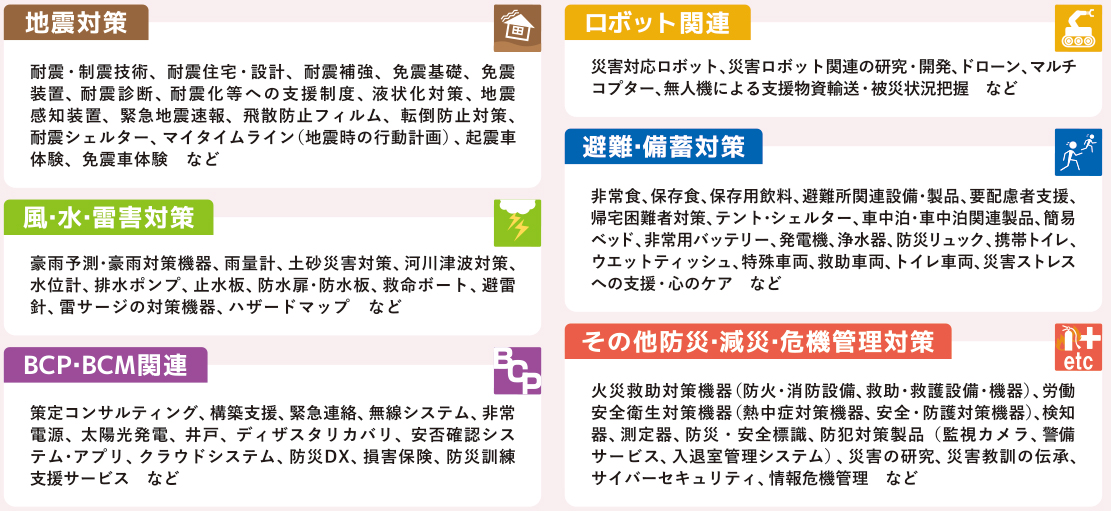今年で第14回となります本展は、災害時に命を守ることはもちろん、その後の生活を支えるために必要な備えについて社会全体で取組むことを目標に、南海トラフ地震対策中部圏戦略会議と協力し開催いたします。 「防災・減災・危機管理」に向けて役立つ製品や技術、サービスの紹介に加え、企業や社会の防災力・危機管理能力の向上と、関連産業の振興を図る場となるよう尽力いたします。